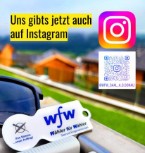 Die Wählervereinigung WfW Wähler für Wähler ist auf mehreren sozialen Medienplattformen aktiv. Gerne können Sie uns auch auf Facebook oder Instagram besuchen. Folgen Sie hierfür einfach den nebenstehen Link.